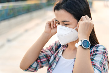 If staying inside on smoky days isn't possible, masks such as an N95 mask are a good idea. These can often be found in a pharmacy or hardware store. Sometimes on an especially smoky day, despite keeping windows and doors tightly shut, smoke might still seep in. Experts suggest that air duct system filters might be the cause, and if they're dirty, they might need to be changed. They also recommend checking the heating/ventilation/air-conditioning (HVAC) system and consider turning off the "fresh air" option if smoke continues to get inside the house.